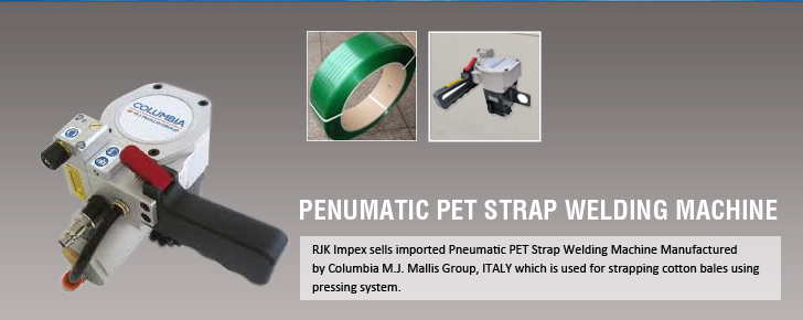 RJK Impex sells imported Pneumatic PET Strap Welding Machine Manufactured by Columbia M.J. Mallis Group, ITALY which is used for strapping cotton bales using pressing system.